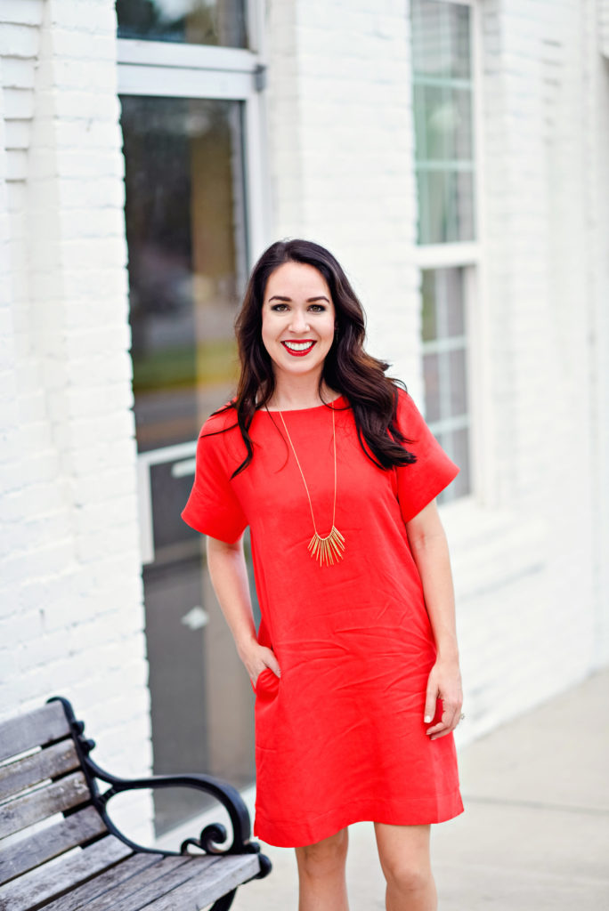 The Perfect Red Dress. In honor of the UGA game this weekend I had to share a loose fitting red dress and what I will more than likely be wearing on Saturday. Did I mention it has pockets?! Pair it with a great pair of flats or heels and you are ready for work or fun.