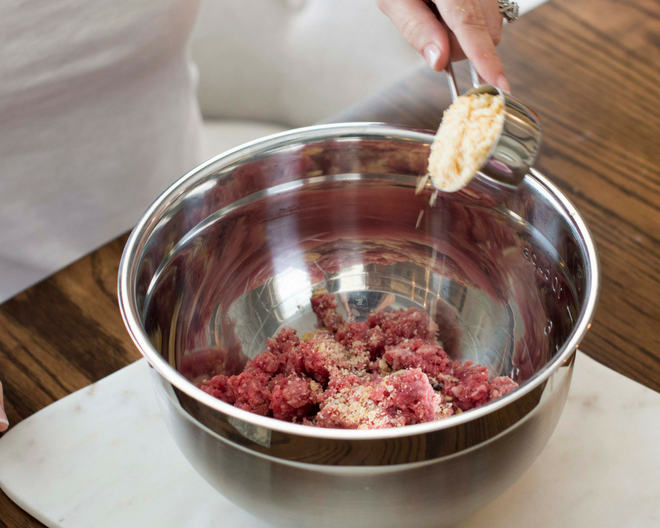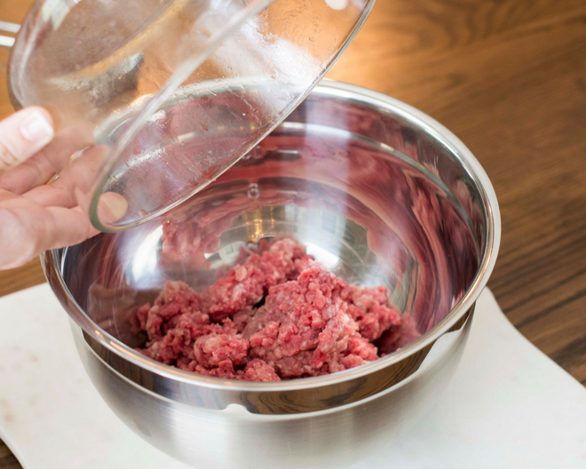 Divide meat into 4 equal parts and pat out 4 equal sized patties.