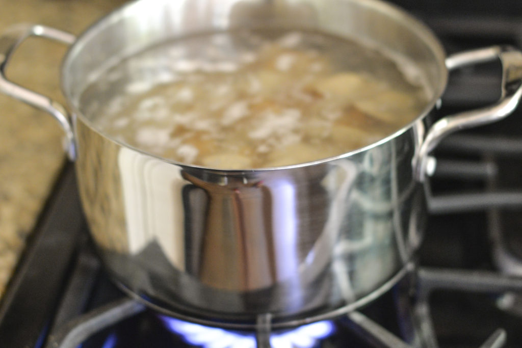 Next, boil them in water for 25-30 minutes. You'll know they are done when they are fork tender.