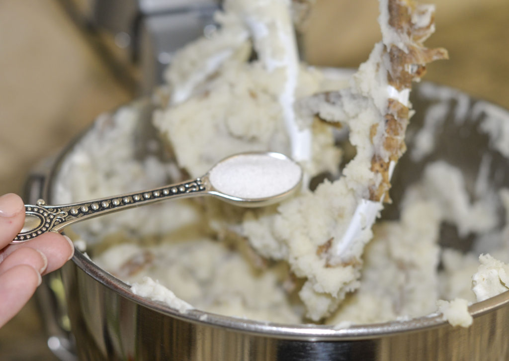 Drain the potatoes and transfer the potatoes to the stand mixer.